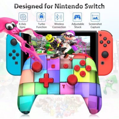 Manette Switch Pro Rubis-Cubes – Sans fil pour Switch 1/2, Lite, OLED & PC filaire – Turbo & Double vibration