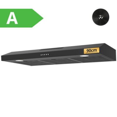 FIREGAS Hotte Aspirante 90cm-sous comptoir-recirculation et évacuation-CC130 Filtre à charbon -3 vitesses-Noir-Classe énergétique A