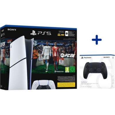 Pack PS5 Digital : Console PlayStation 5 (modèle Slim) + FC26 (code dans la boite) + 2ème manette DualSense Noire