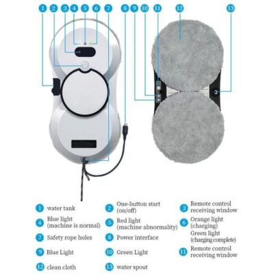 Robot laveur de vitres 5600PA, super aspiration, pulvérisation électrique, avec télécommande, 3 modes de nettoyage, blanc