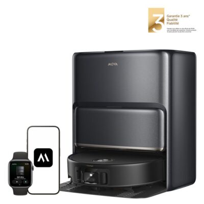 MOVA Z60 Ultra Roller Complete Robot aspirateur laveur 28000 Pa, nettoyage 80 °C, détection déjections, idéal familles animaux