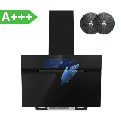 FIREGAS Hotte Aspirante inclinée 60cm, 700m³/h,Classe A+++, 9 Vitesses,BLDC Moteur,Evacuation &Recyclage, Geste + toucher,Noir