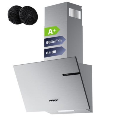 CIARRA Hotte Aspirante 60cm 580m3/h A+ 3 Vitesses Recyclage ou Evacuation avec 2 Filtre Actif Hotte Inclinée Inox CD6765AS