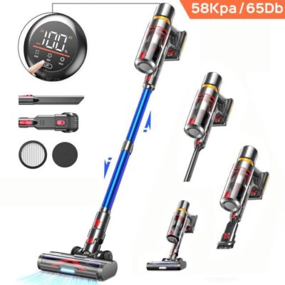Aspirateur Balai Sans Fil silencieux, 58000 Pa/670W/60 Mins max, OLED Écran, Batterie amovible, Poils d'animaux, Filtration HEPA