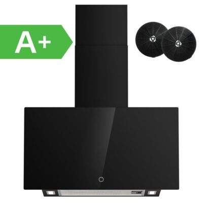 FIREGAS Hotte aspirante 60cm - 350m³/h - Classe A+++ - Recyclage & Evacuation - 3 vitesses - 2 Filtres à Charbon - Noir