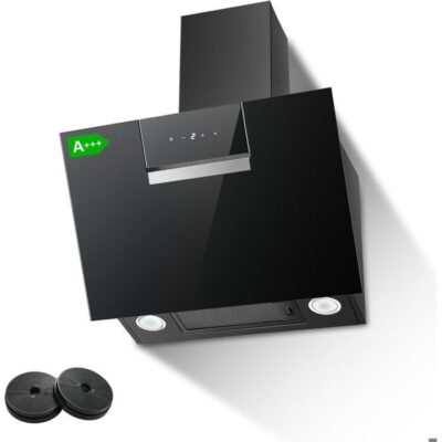 Hotte Aspirante 60cm - Hotte de Cuisine Incliné - 800 m³/h - 2 Filtres à Charbon - Recyclage & Evacuation - Noir