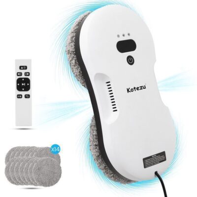 Robot Nettoyeur Laveur de Vitre Automatique, 2800PA*2, Navigation Intelligente, Télécommandé, pour Les Surfaces Lisses, 14 Chiffons