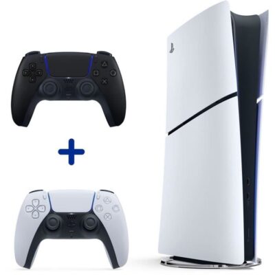 Pack PS5 Digital : Console PS5 Digitale (Modèle Slim) + 2ème Manette sans fil PS5 DualSense Noire