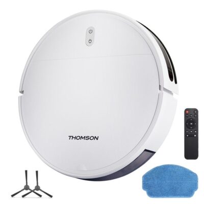 THOMSON - THVC204RW - Aspirateur Robot Laveur - 90 min - Navigation aléatoire - 4 modes nettoyage - 0,2 L poussière - 0,2 L eau