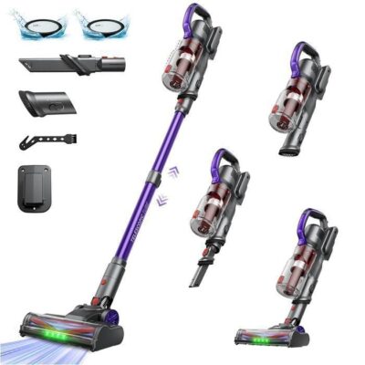 Aspirateur Balai sans Fil Erabros EV5-600W/70KPa/80 Min-Écran LED-4 Modes-Batterie Amovible-Anti-Emmêlement-LED Verte