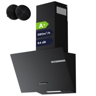 CIARRA Hotte Aspirante Inclinée 60cm A+++ 650m3/h avec Filtre au charbon Recyclage ou Evacuation Noir