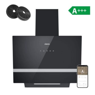CIARRA Hotte Aspirante 60cm WI-FI et Commandes Tactiles A+++ 650 m3/h Booster LED Affichage Noir