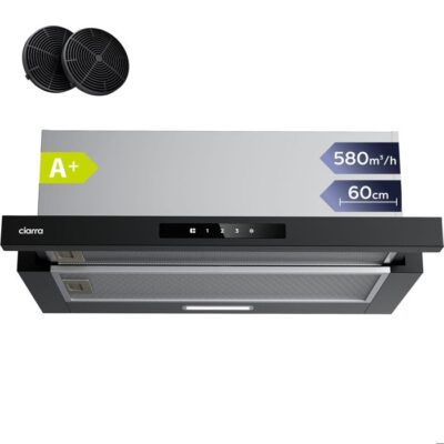 CIARRA Hotte Téléscopique 60cm Classe A++ 370m3/h 2pcs Filtre Actif Hotte Tiroir Intégrée Noir