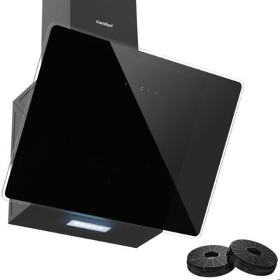 Comfee Hotte Aspirante Inclinée 60cm - 400m³/h - 2 Filtres à Charbon - 3 Vitesses - Commandes Sensitives - Verre Noir