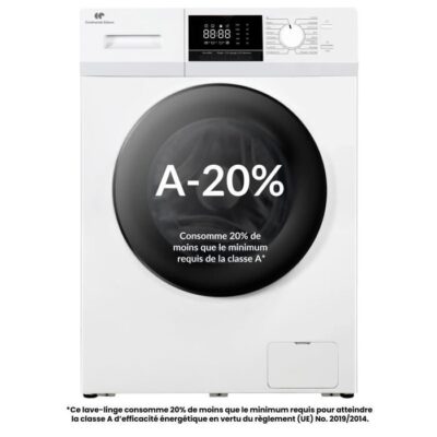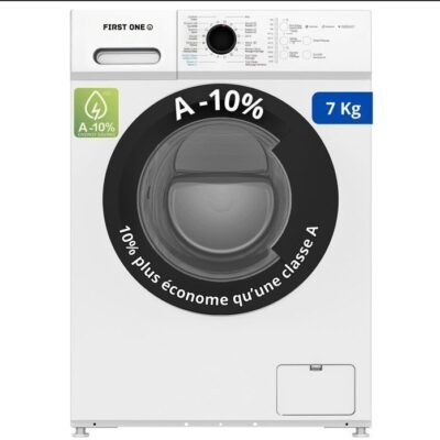 Lave-linge frontal FIRST ONE FLL81400WH - 8 Kg - 1400 tr/mn - 16 programmes - Eco - Intensif - Rapide – Très Faible conso - A-20%